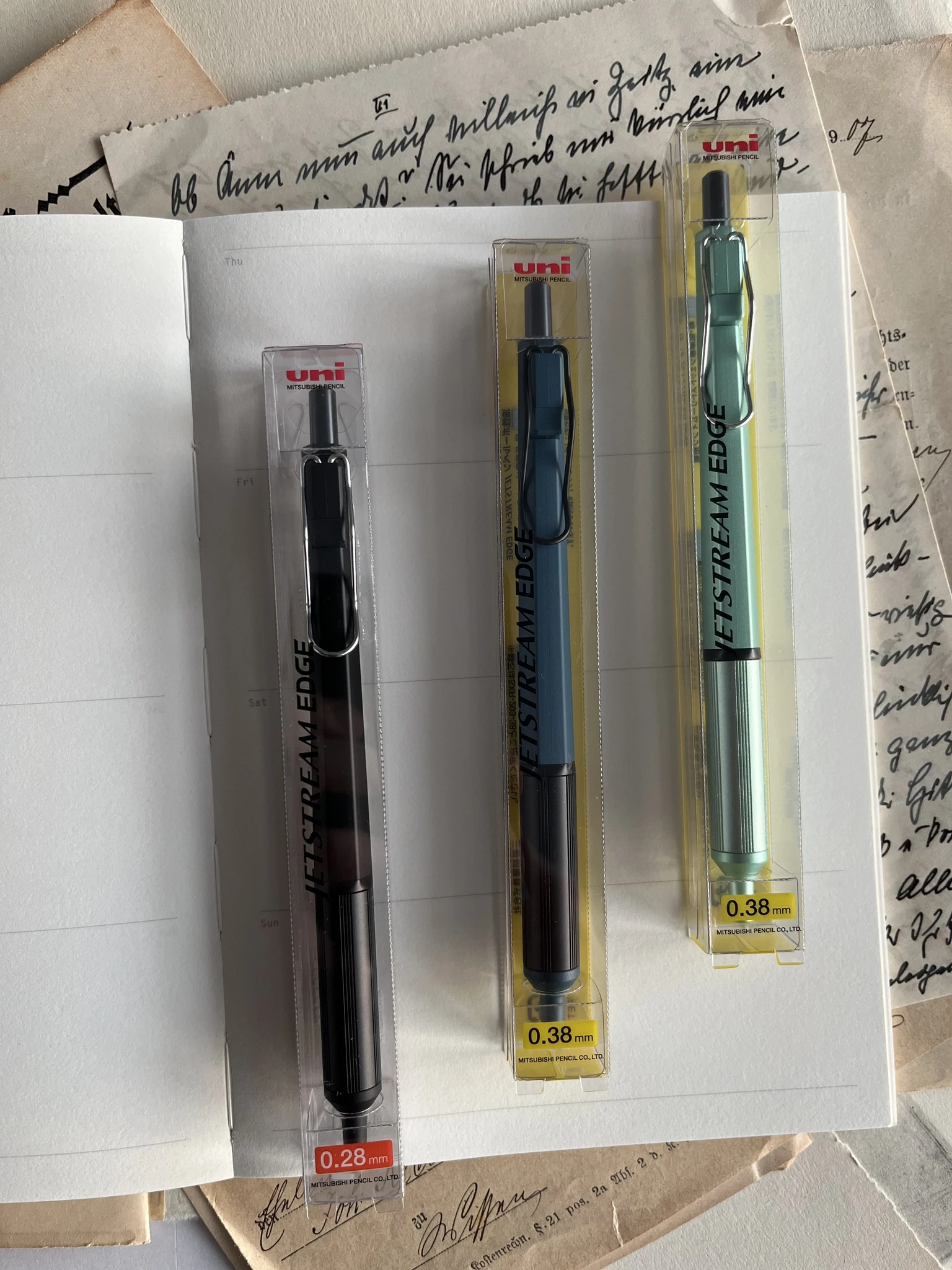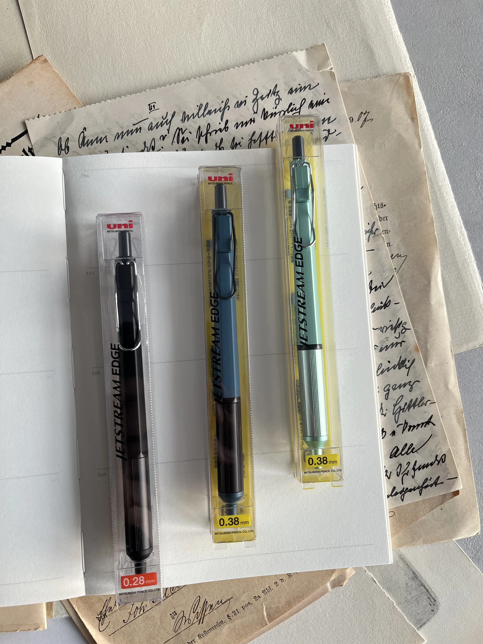 The world's first 0.28 mm oil-based ballpoint pen, the Jetstream Edge