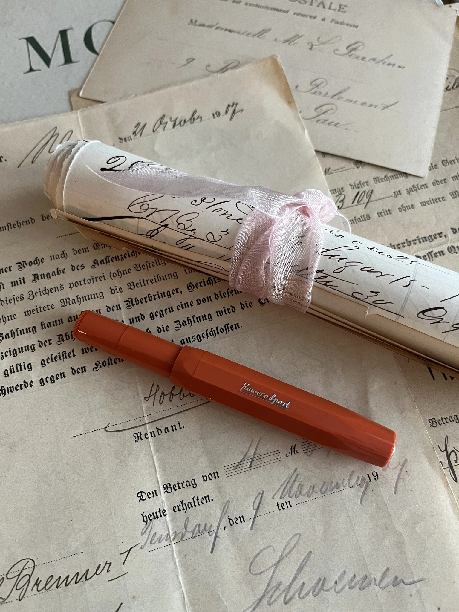 Products ⟩ Pen and ink fountain pen Kaweco Skyline Sport Fox Brand: Kaweco Fountain pen Kaweco Skyline Sport Fox has the Kaweco's signature design originally created in 1911. Durable body made of Makrolon plasticStainless steel nib Kaweco logo in silver-coloured metal on the end of the cap Two nib variations available: EF, FOne blue ink cartridge includedLength posted 13 cm, closed 10,5 cmRefillable with Kaweco ink cartiridges or mini converter (available separately)Add functionality and style with the Kaweco Octagonal Clip (available separately. Variation --- EF nib F nib Add to cart €24.95 Share: Follow Jonna Studio on Instagram to stay tuned for the latest updates and new arrivals.