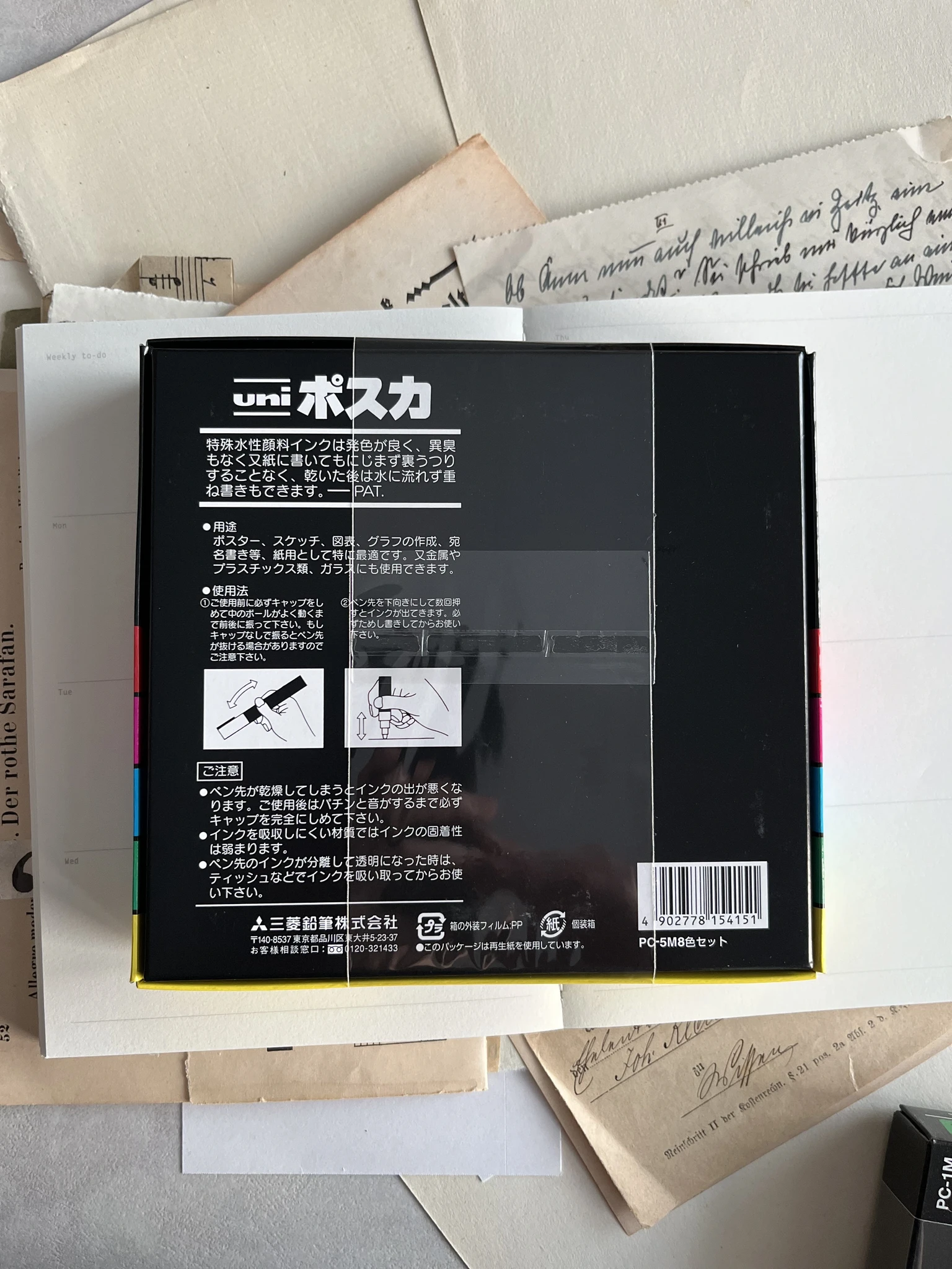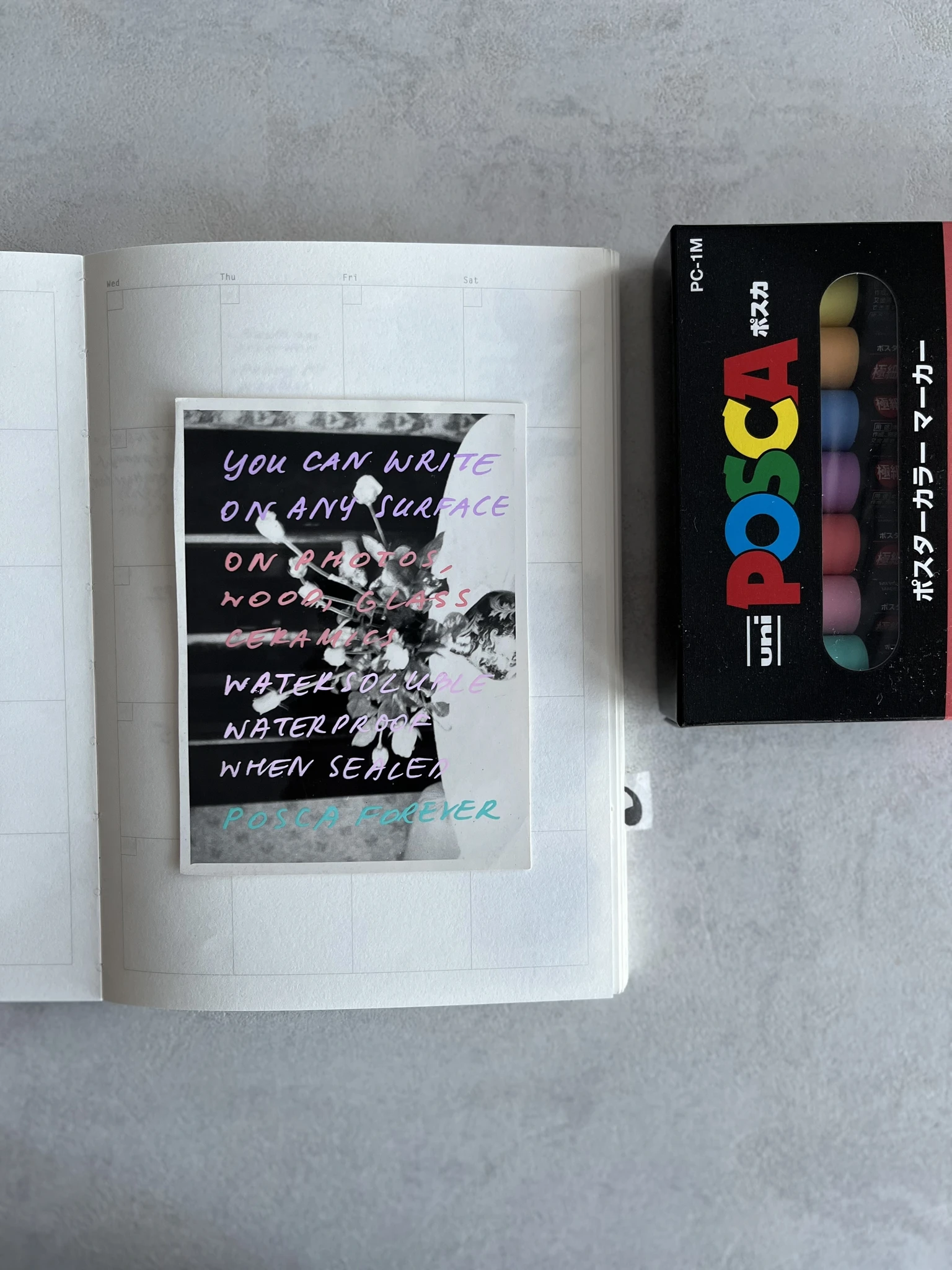 Posca is a water-based opaque paint pen with pigments that adhere to a