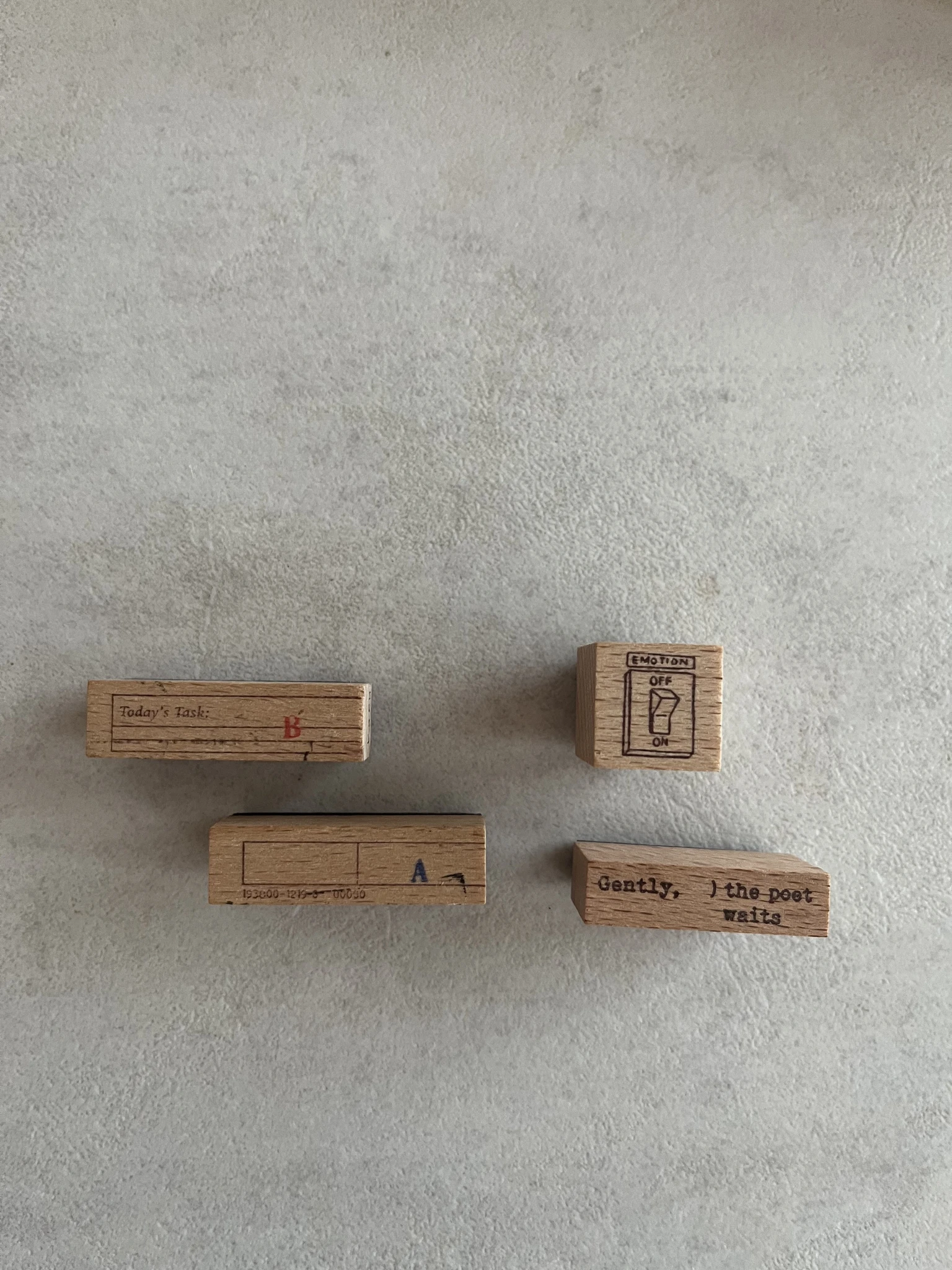 4 variations: paperwork A, paperwork B, emotion on/off, gently the poet waits.