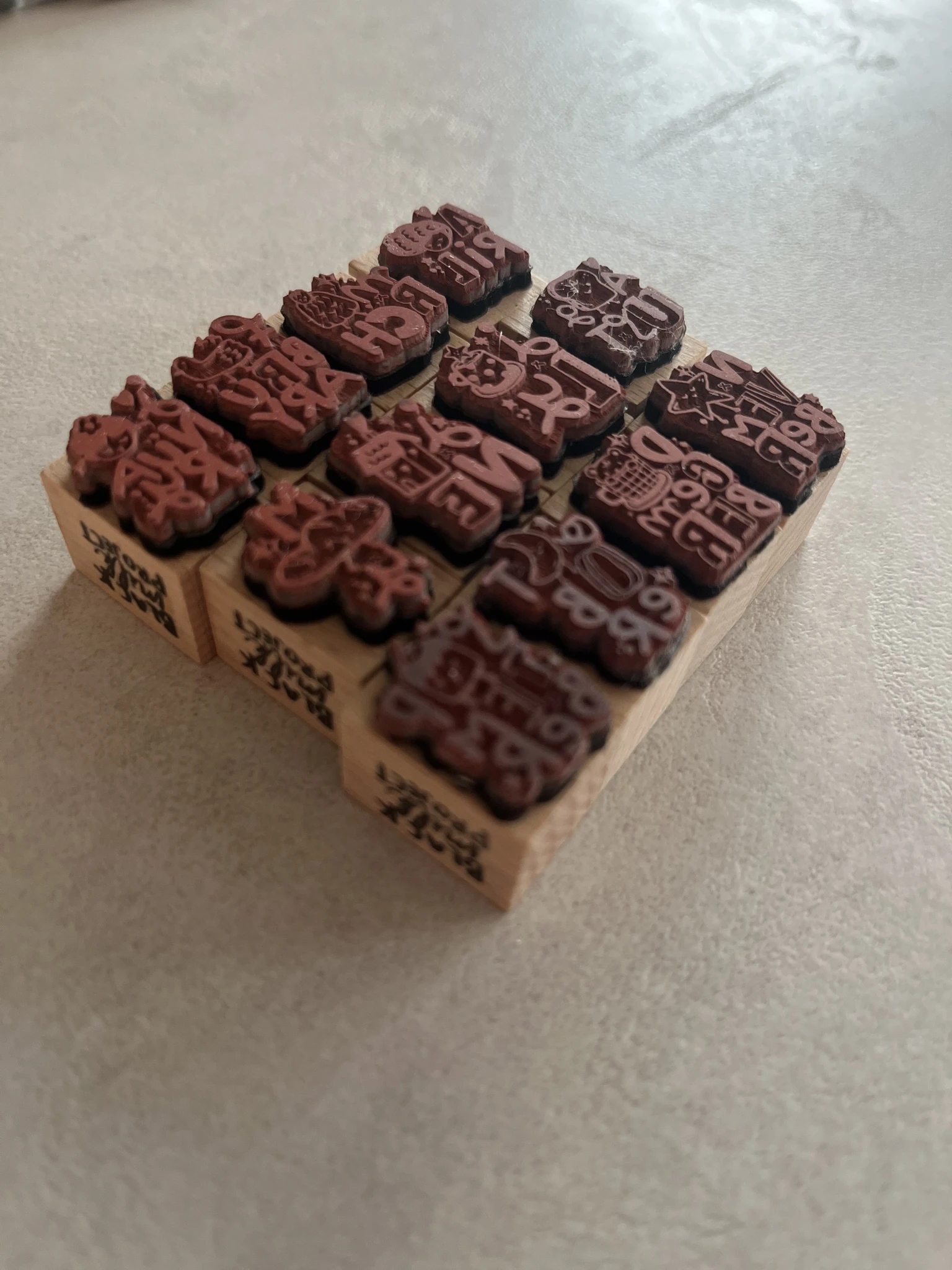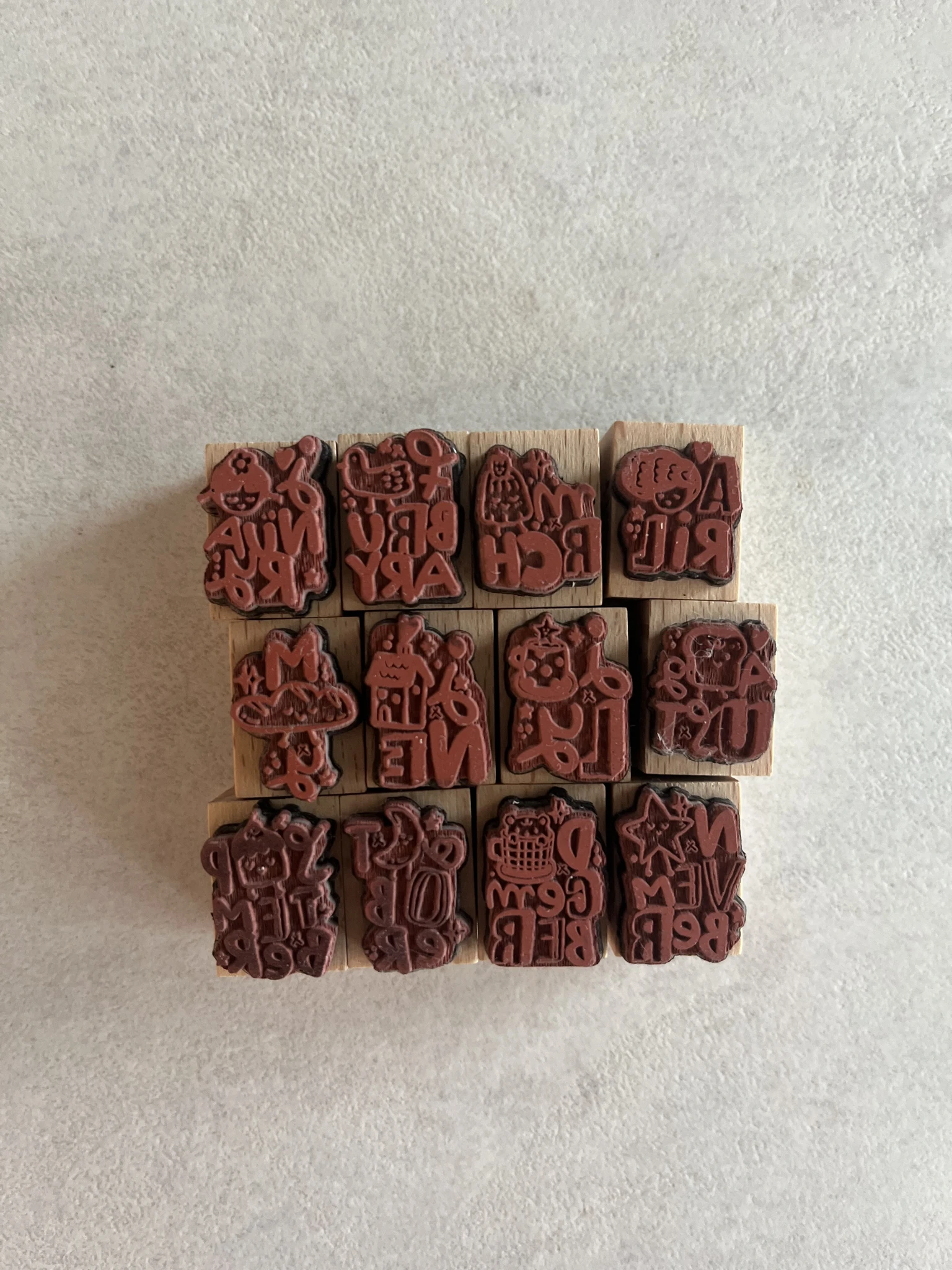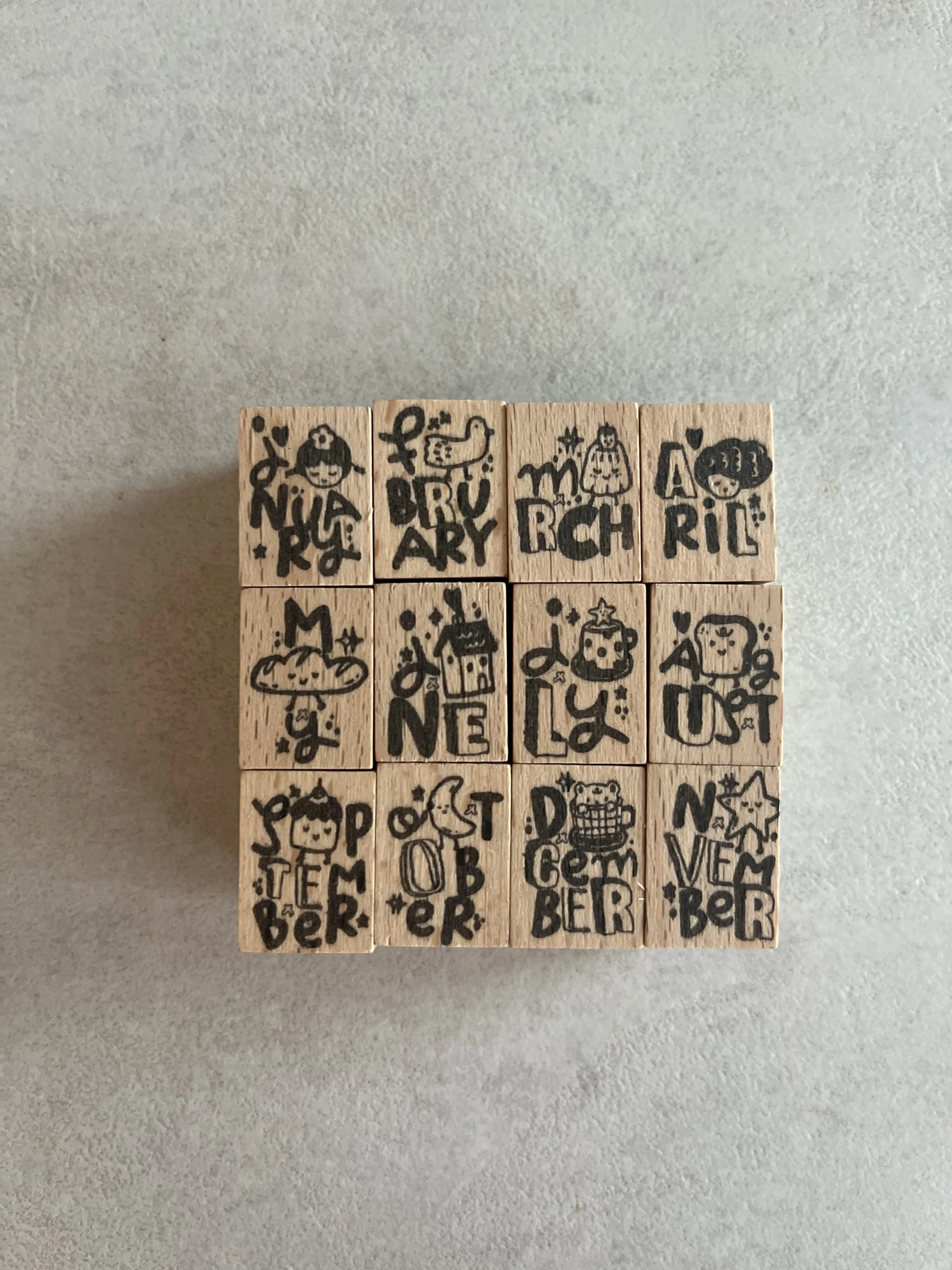 Very gently preloved set of monthly rubber stamps this Moment by the Black Milk Project. I have only gently tried out the months of september, october and november. See condition in the photos.