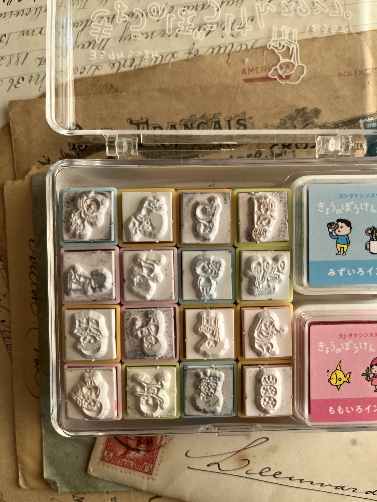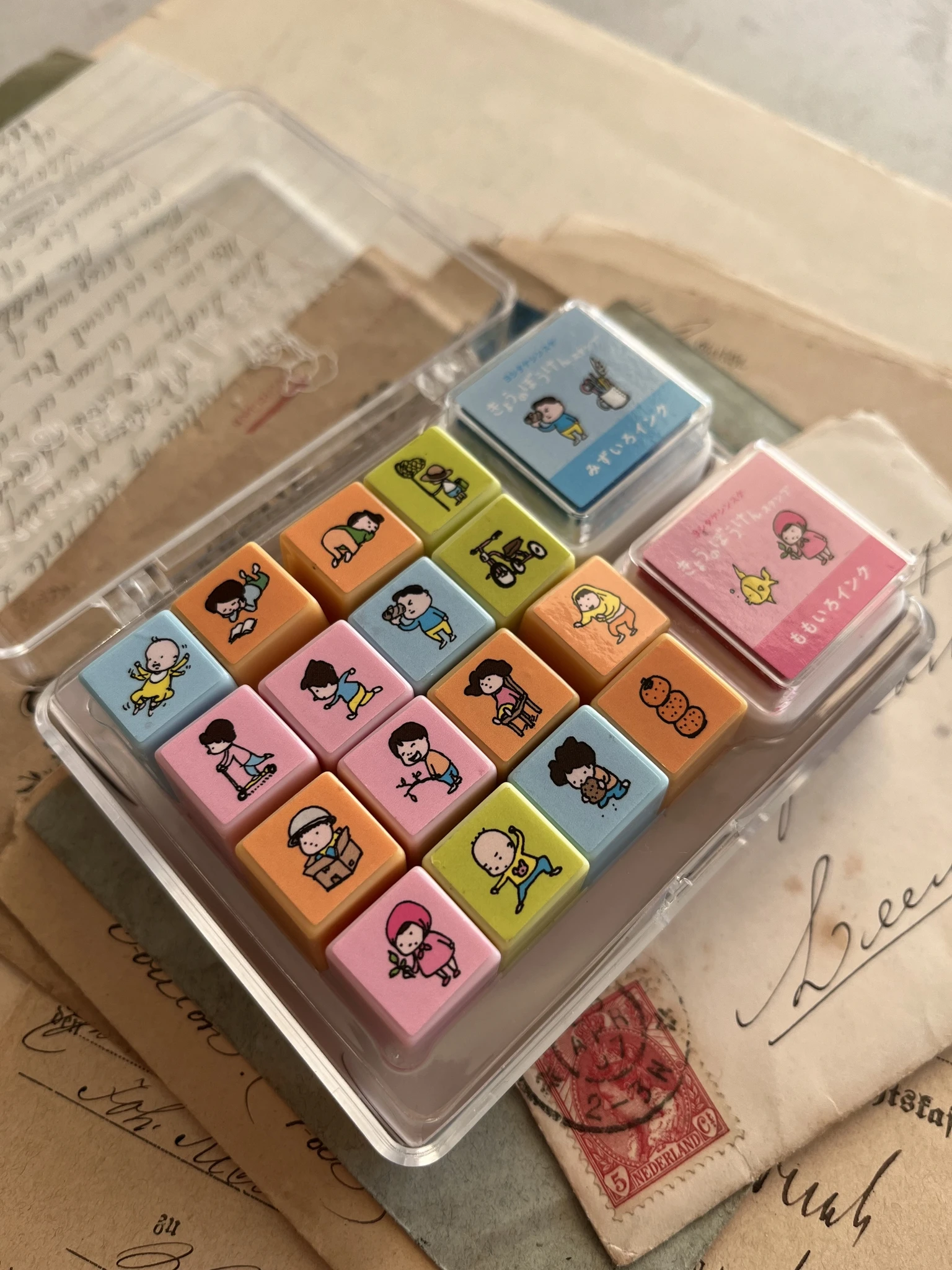 A mix of preloved Hobonichi stamps. Compiled of two sets: "Today's Adventure" and "At Home." Designed by children’s book author and illustrator Shinsuke Yoshitake for Hobonichi in 2021.