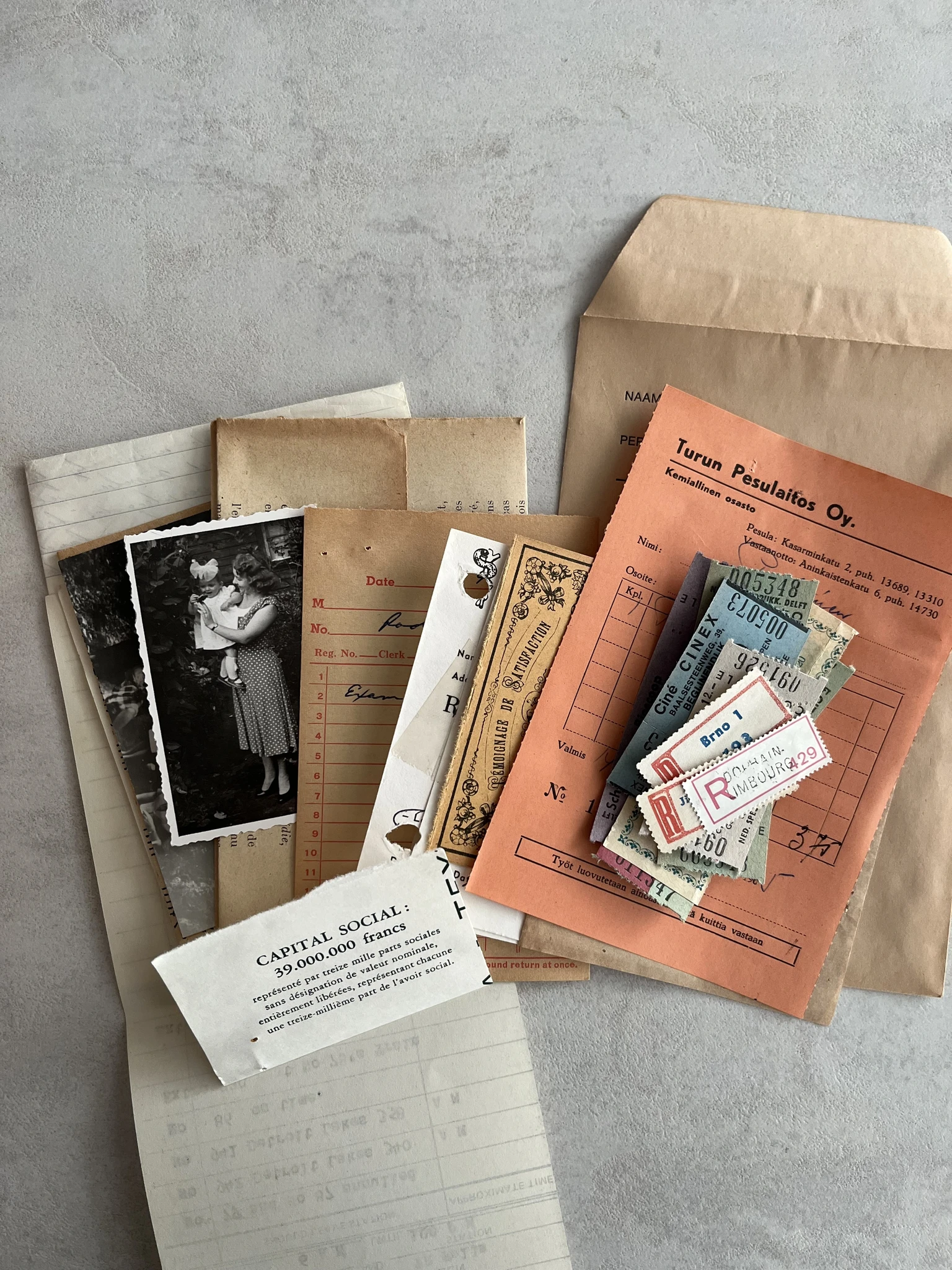 Tucked inside a beautifully worn vintage salary envelope, you’ll discover a curated collection of over 20 pieces of real, timeworn ephemera—each one whispering stories from decades past. The sets include a nostalgic mix of aged book page scraps, old receipts, vintage photos, delicate tickets, and assorted paper fragments—all in a variety of shapes and sizes, thoughtfully selected to ignite your creativity.