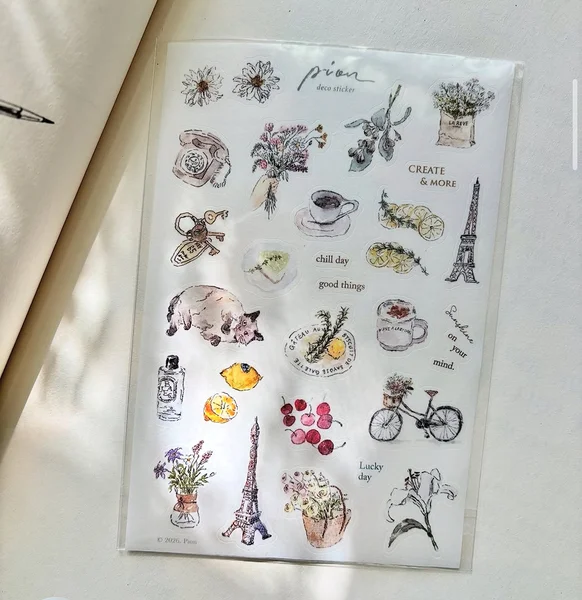 Beautiful stickers Chill by Pion, the talented Taiwanese artist, who is well known for her delicate and intricate designs and illustrations of girl characters.