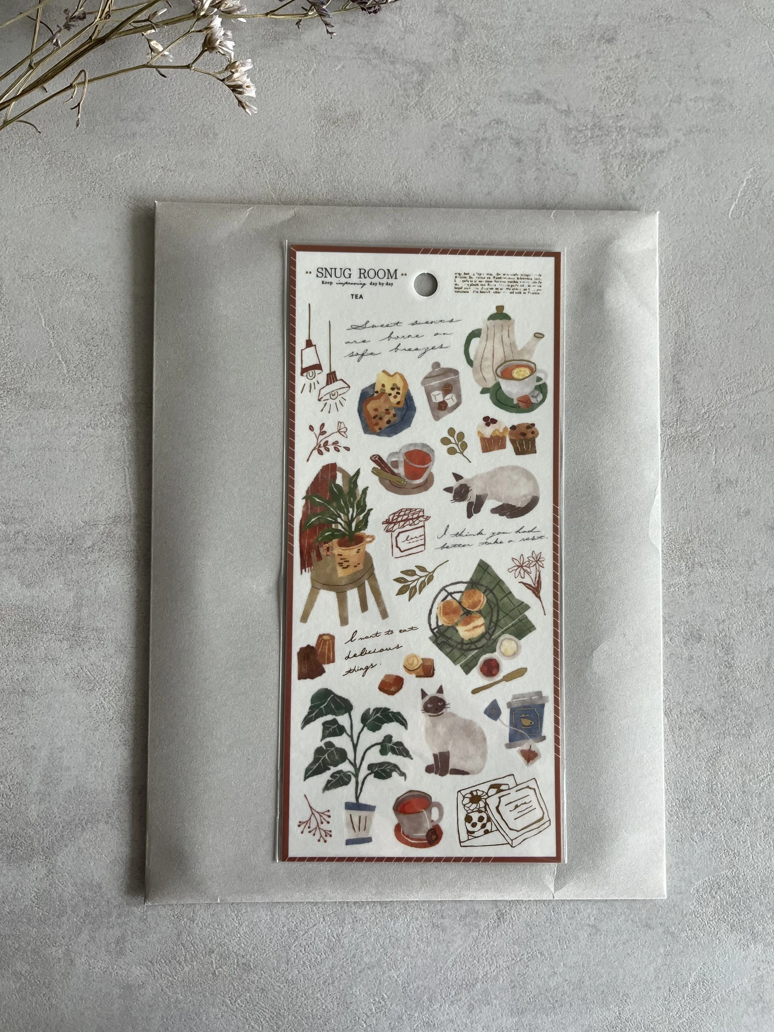 Products ⟩ Washi tape and Stickers stickers Snug Room, Mindwave Brand: Mindwave Sticker sheet "Snug Room" by Mindwave. These stickers are perfect for decorating your journal and planner spreads.Measurements: 17.5 x 9 cmThree variations available: Plant, Coffee, Book, TeaMaterial: washi paperPhotos (c) Jonna Studio and Mindwave Variation --- Plants Coffee (Out of stock) Book (Out of stock) Tea Add to cart Share: Follow Jonna Studio on Instagram to stay tuned for the latest updates and new arrivals.