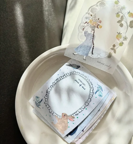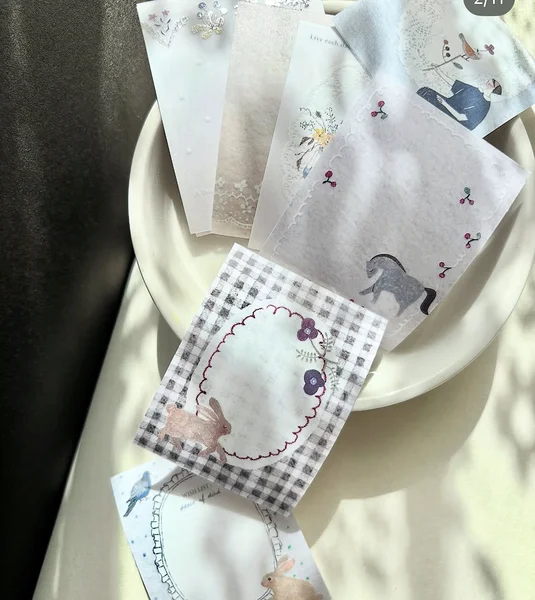 Bring soft woodland storytelling to your pages with Pion’s Of the Forest Tracing Paper Tape. This delicate design features gentle animal illustrations, botanical details, lace frames, and nostalgic character scenes arranged across a repeating pattern.