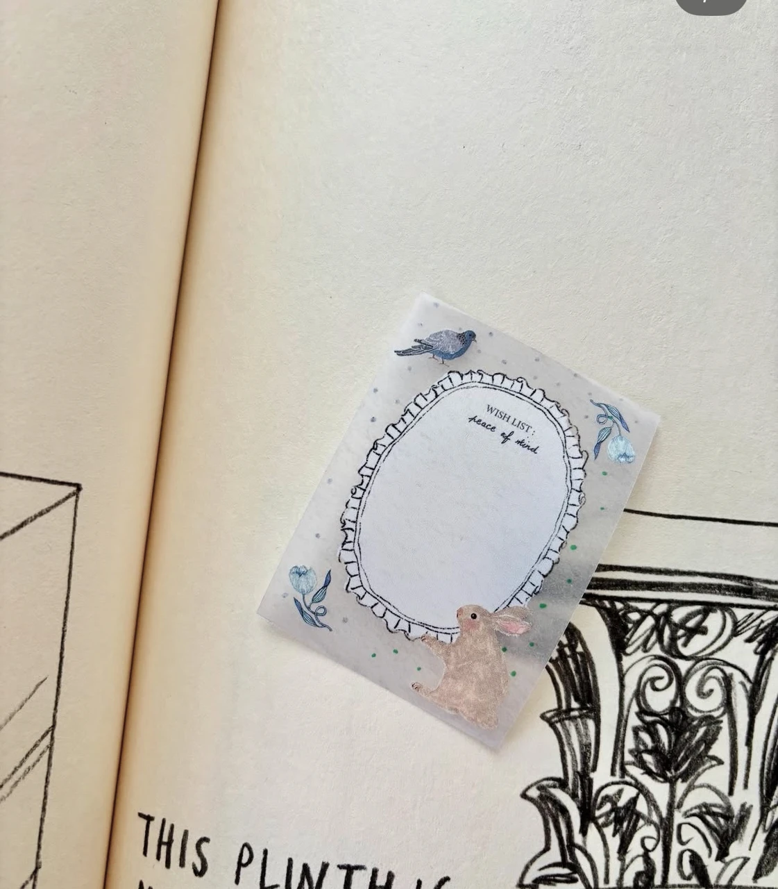 Printed on semi-transparent tracing paper, this tape has a soft matte, vellum-like finish that layers beautifully over text and backgrounds. The translucent quality allows subtle blending and depth, making it ideal for creative collage and journaling.