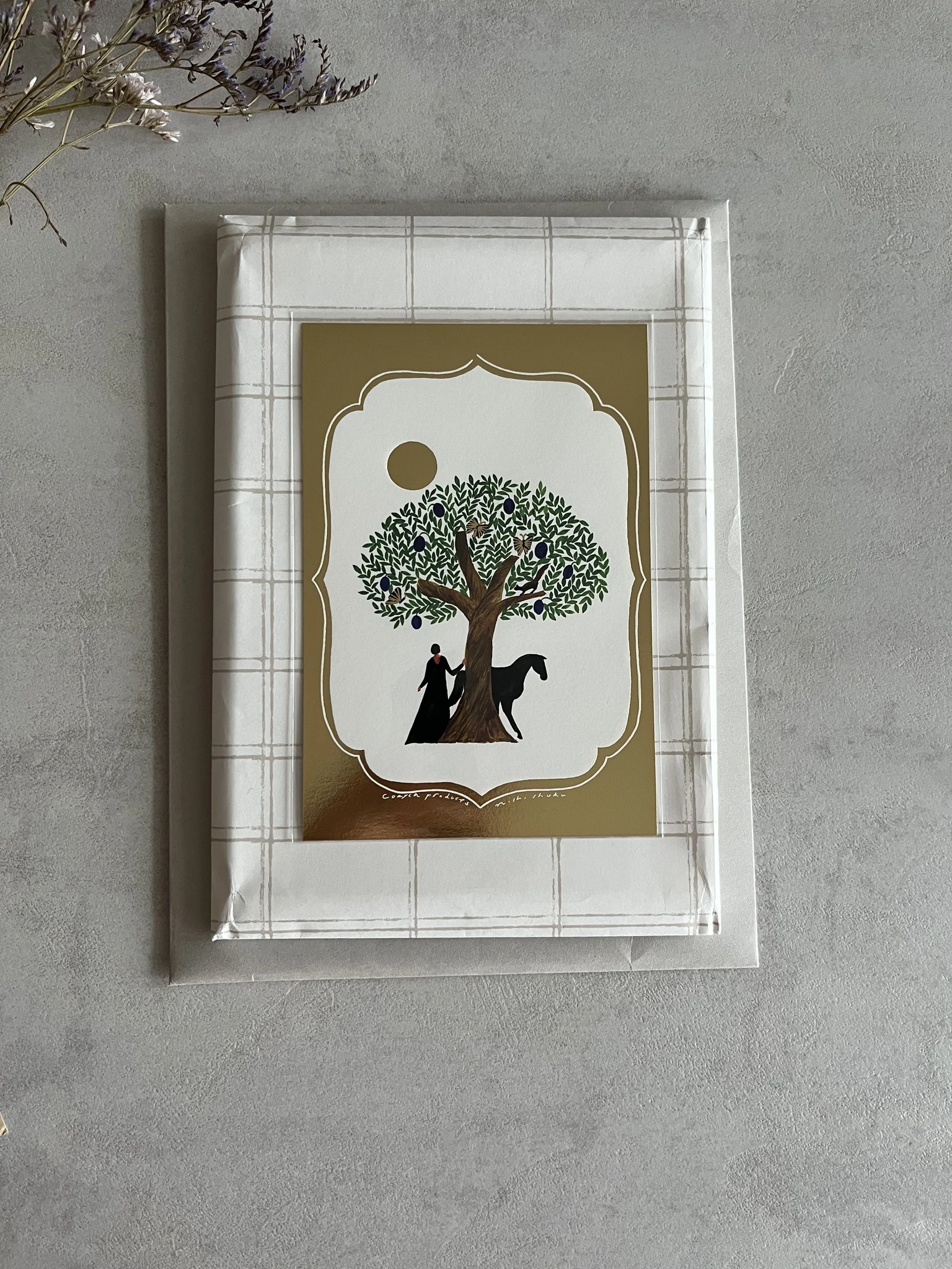 Kuldsete detailidega Cozyca postkaart Tree/Gold.