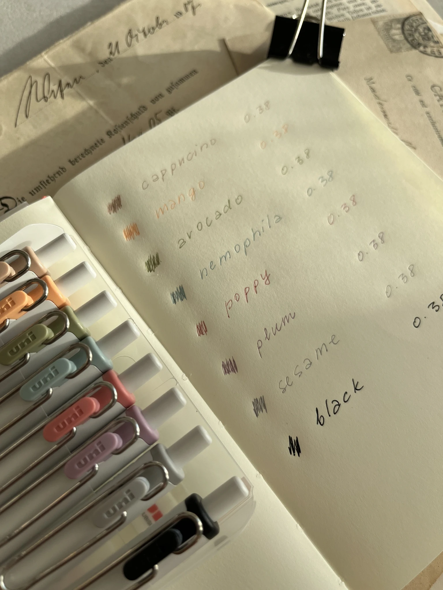 Naudi märkmete tegemist Uni-ball One geelpliiatsiga. Selle ainulaadne tindivalem kasutab suuremaid pigmendiosakesi, mis jäävad paberi pinnale – tumedad värvid muutuvad sügavamaks ja erksad toonid veelgi kirkamaks. Tint kuivab kiiresti ja ei imbu läbi paberi, hoides kirjutatu puhta ja määrdumiskindlana.
