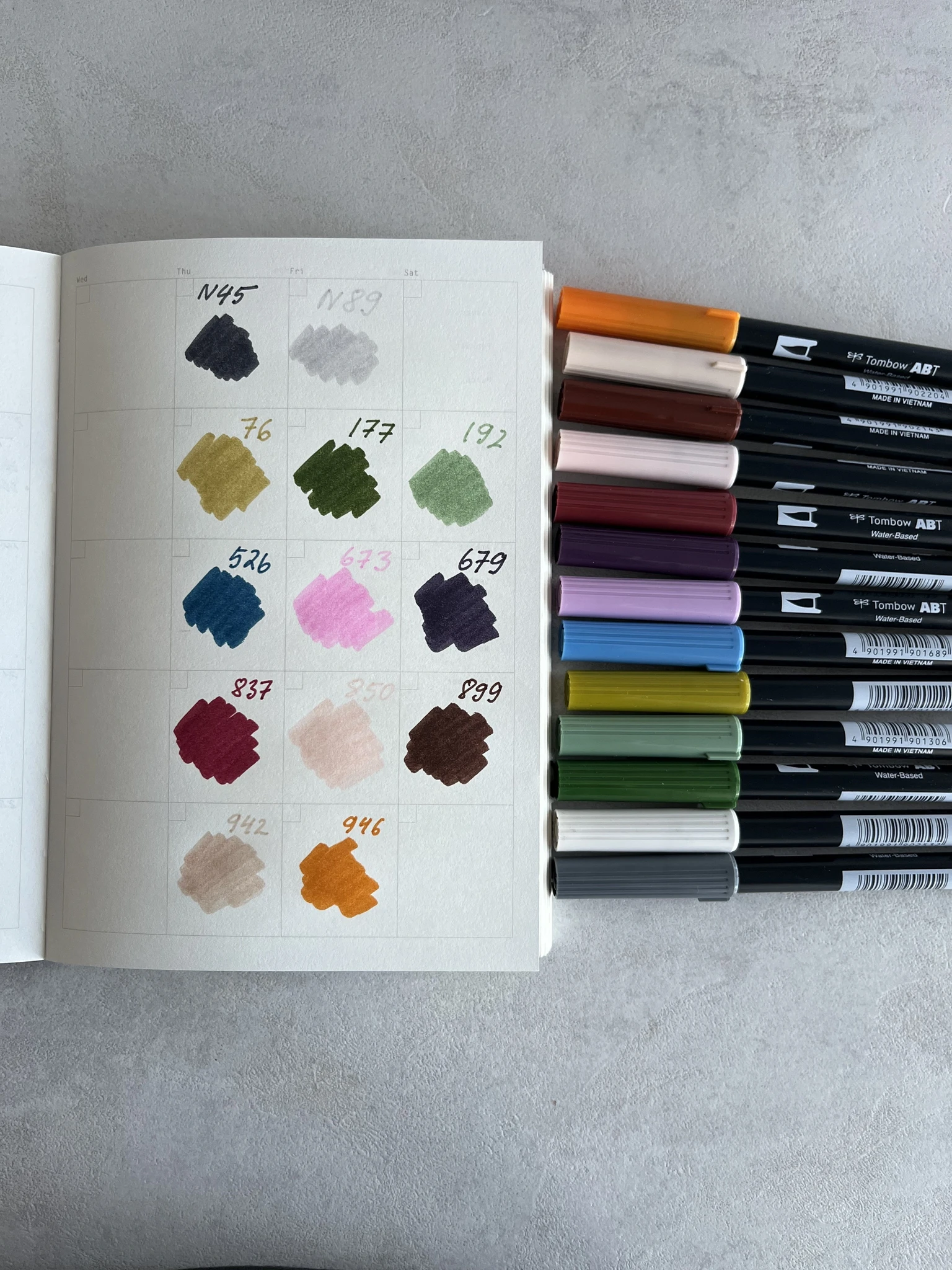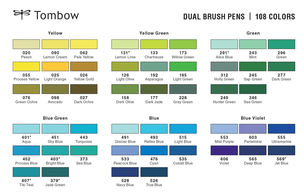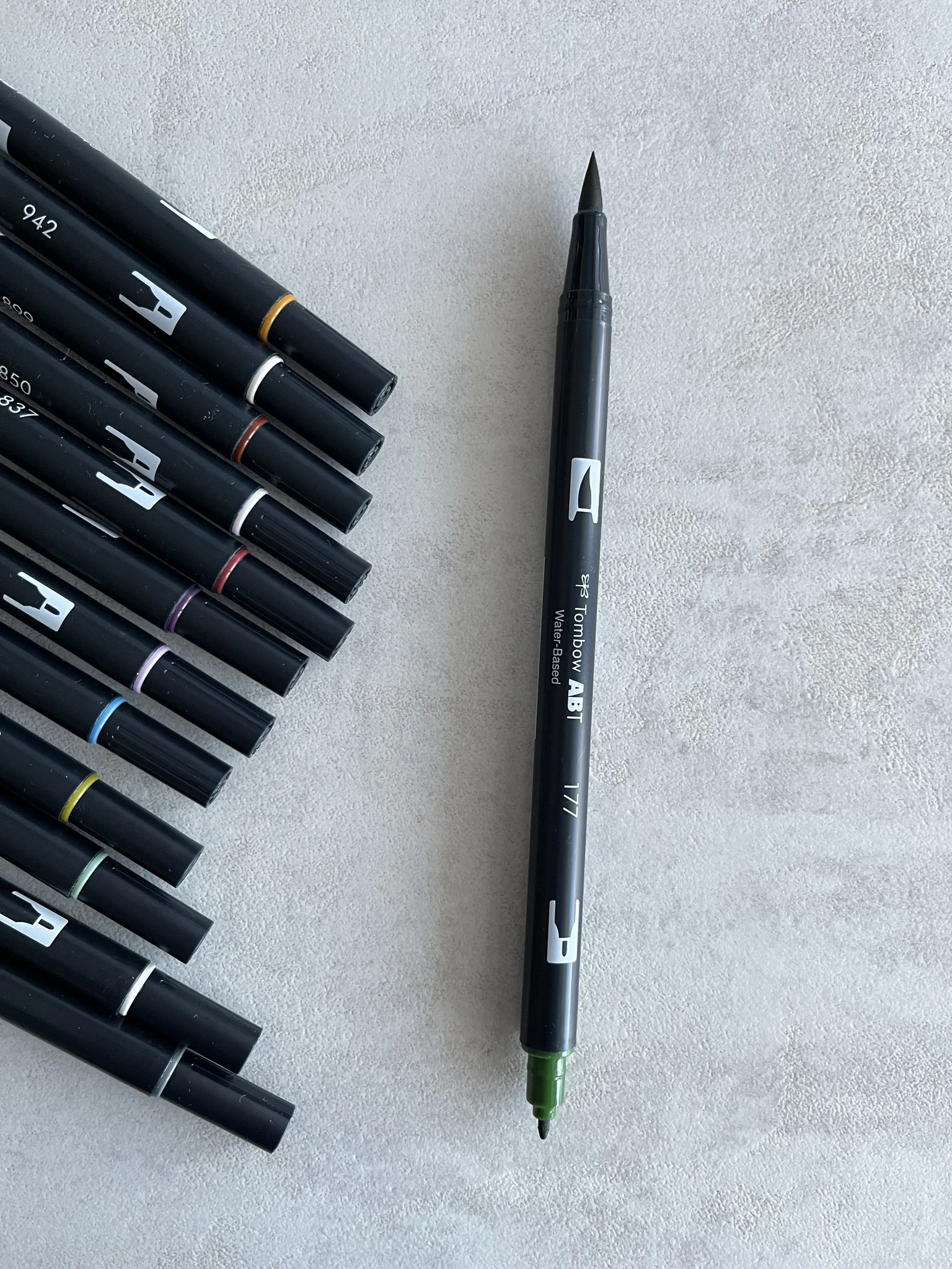 Kahe otsaga marker Tombow ABT Dual Brush Pen. Ühes otsas on pintsel, millega saab tõmmata peeneid, keskmisi või laiu jooni. Peene otsaga on võimalik kirjutada või teha detailsemaid joonistusi.