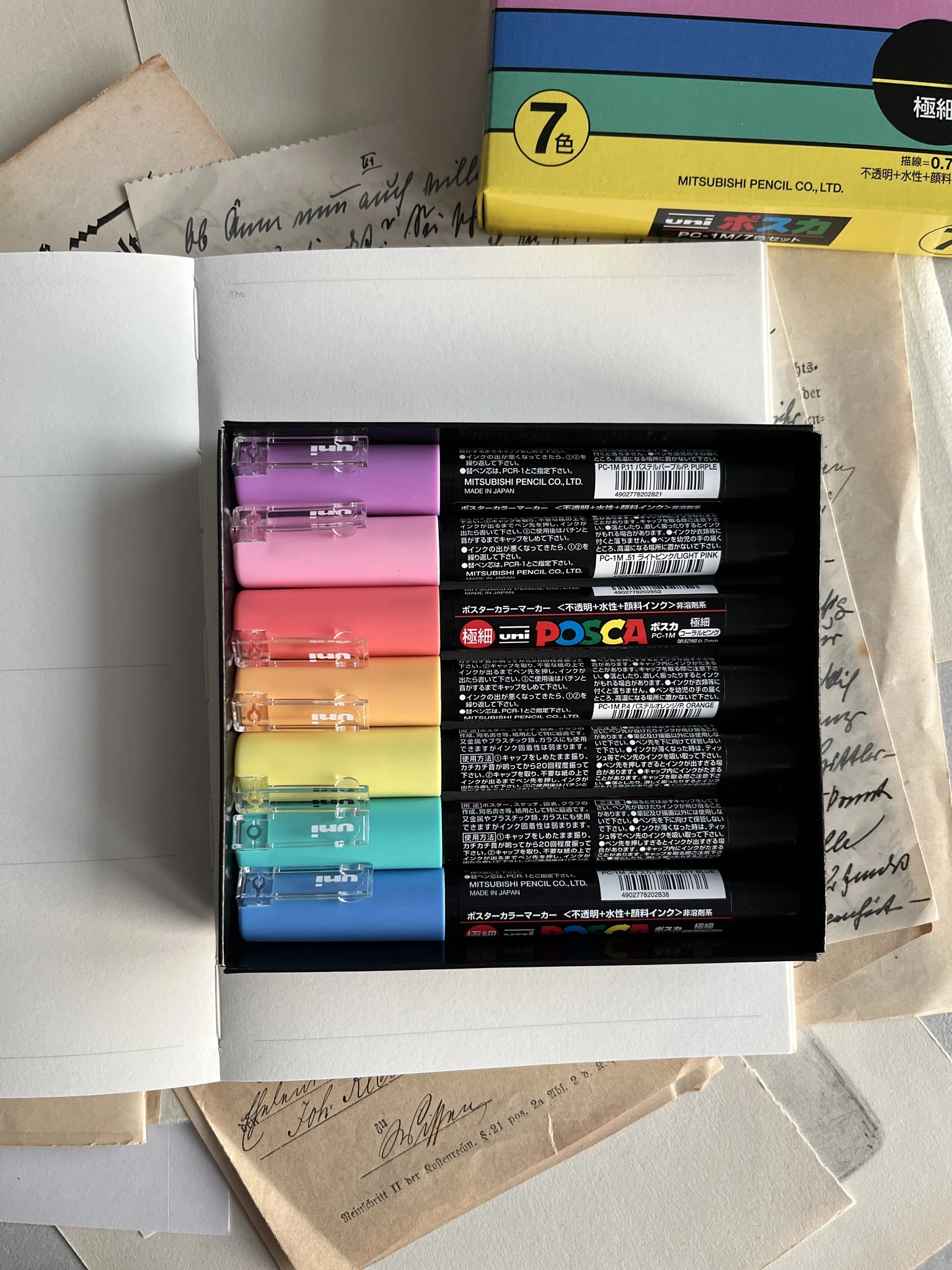 Kvaliteetsed markerid POSCA kahes erinevas komplektis: pastelsed toonid (soft colors) ja põhivärvid (main colors).