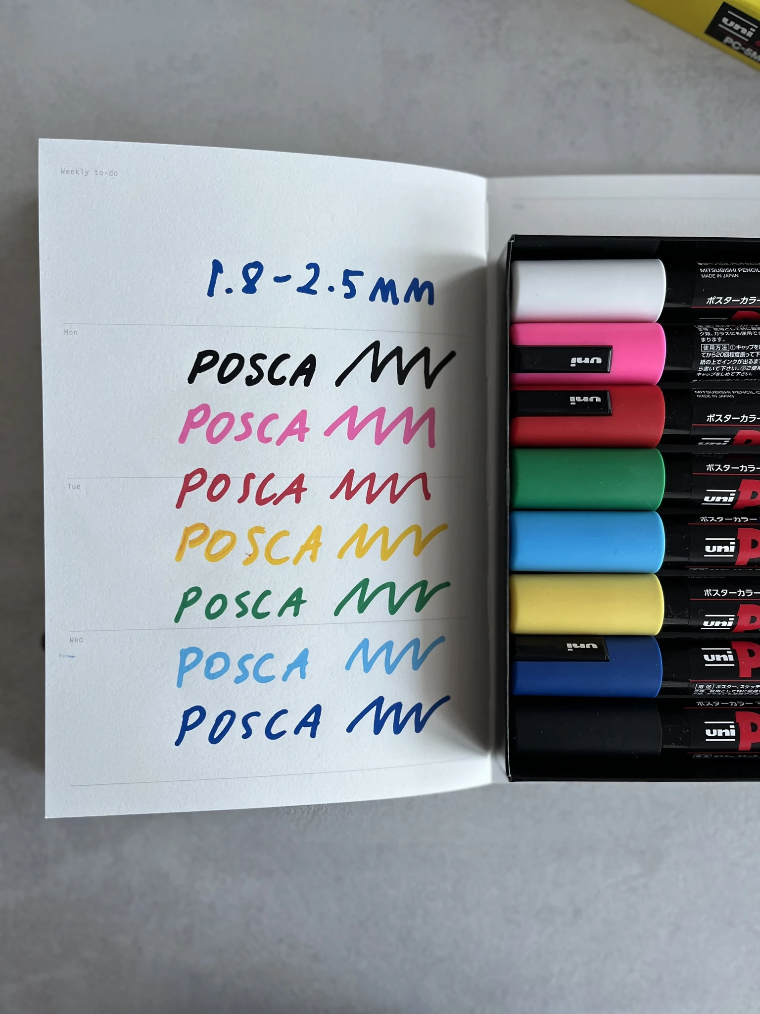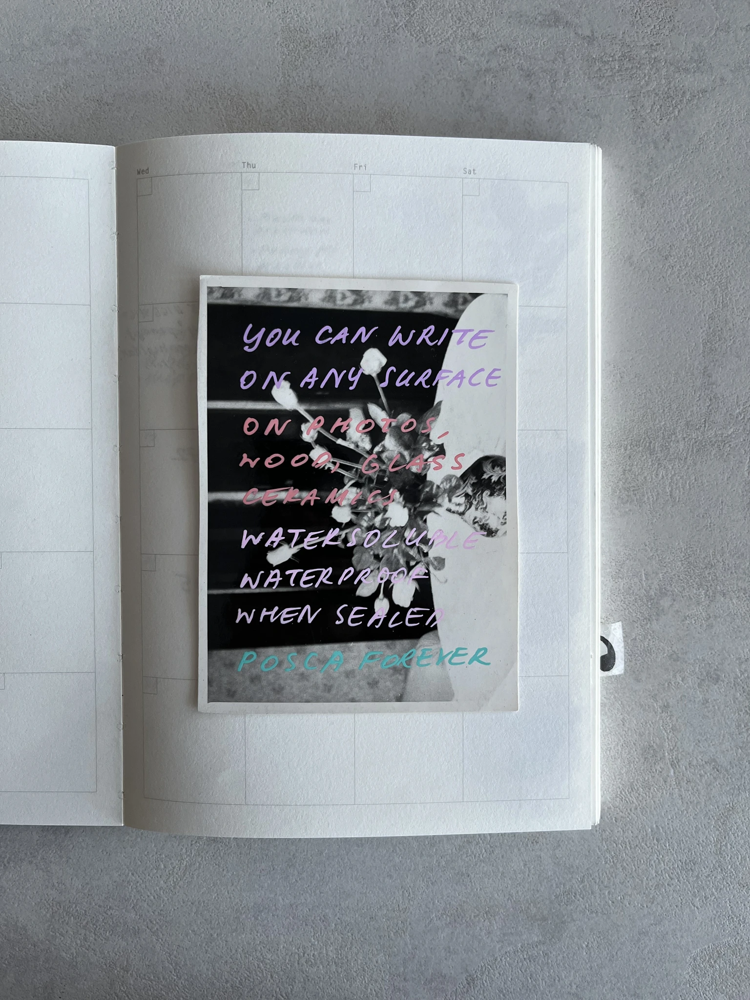 POSCA markerid on veepõhised ning neid saab kasutada peaaegu igal pinnal, s.h. paberil, fotopaberil, puidul, klaasil, metallil, plastil, keraamikal, nahal ja paljudel