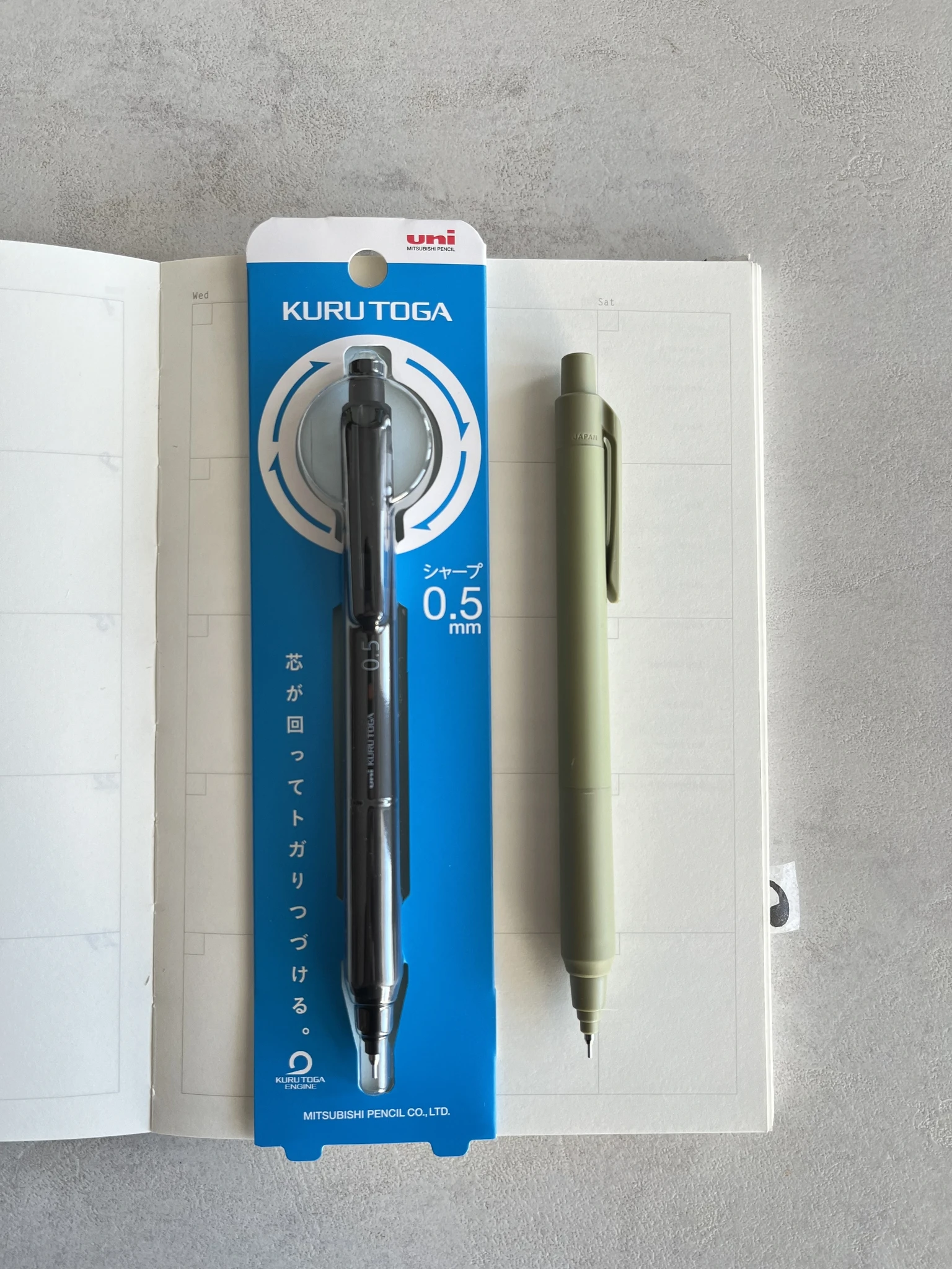 uni KURU TOGA KS mehaaniline pliiats kahes värvitoonis: ürdiroheline ja must. KURU TOGA KS innovaatilise süsteemi tõttu kulub pliiatsiga kirjutades süsi kirjutades ühtlaselt ning tagab sujuva kirjutamis- ja joonistamiselamuse.