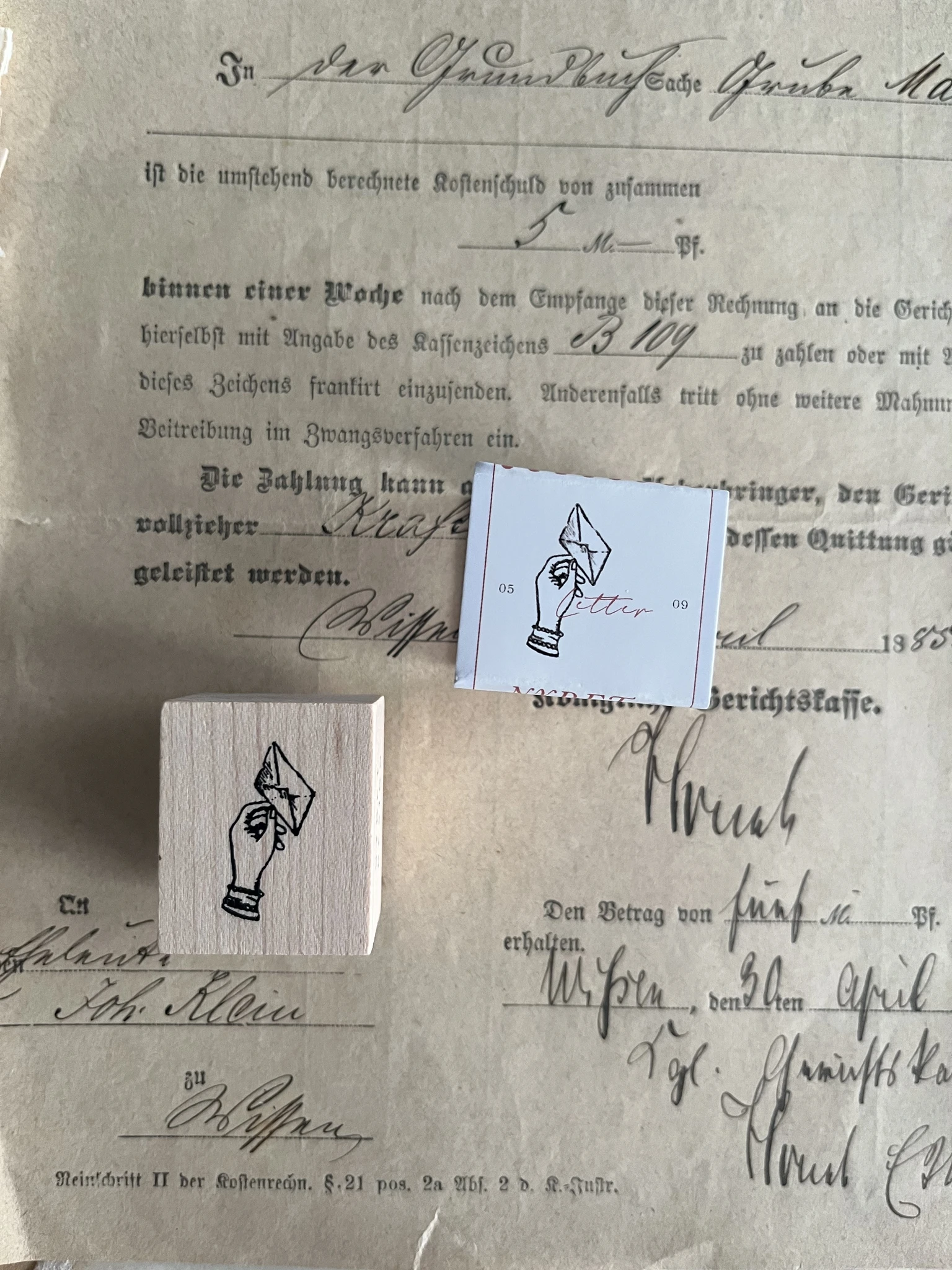 Ümbriku ja käega kummitempel Letter Nyret Designi 9. kollektsioonist the Postcard Series.