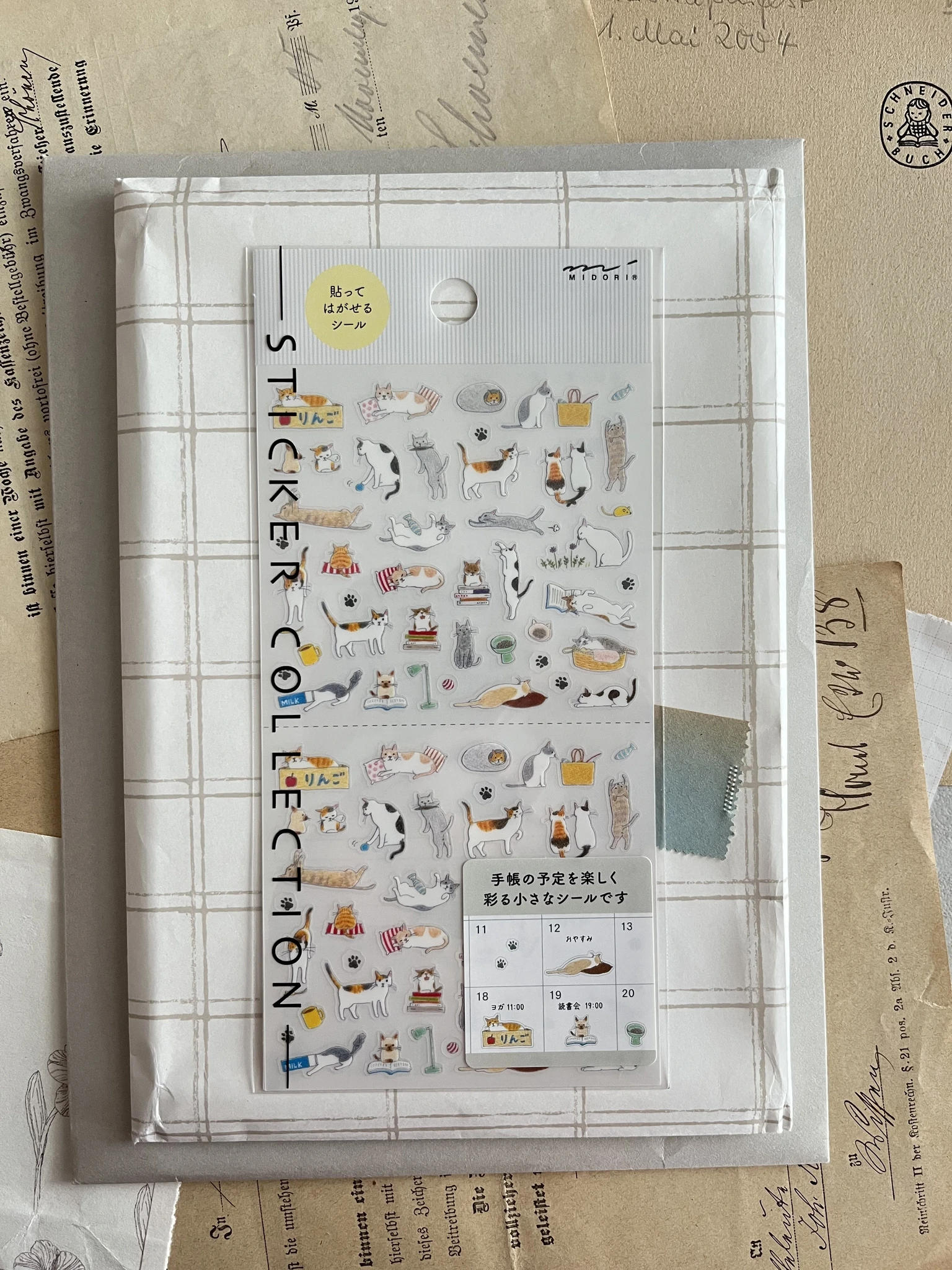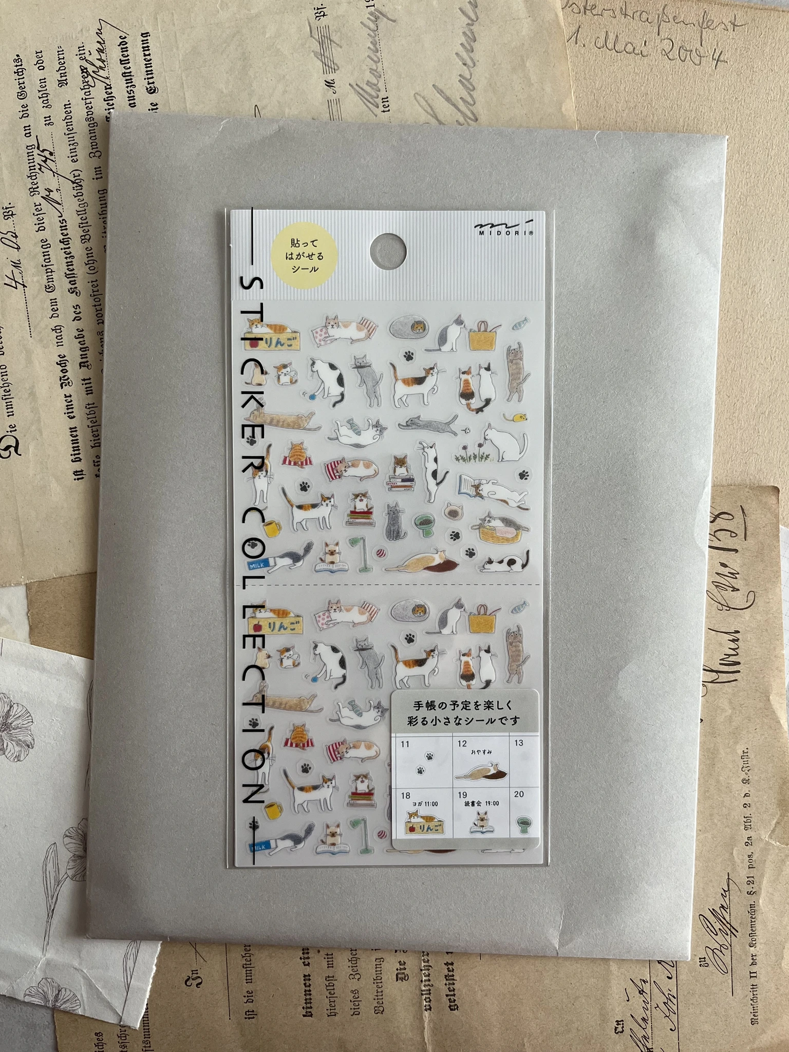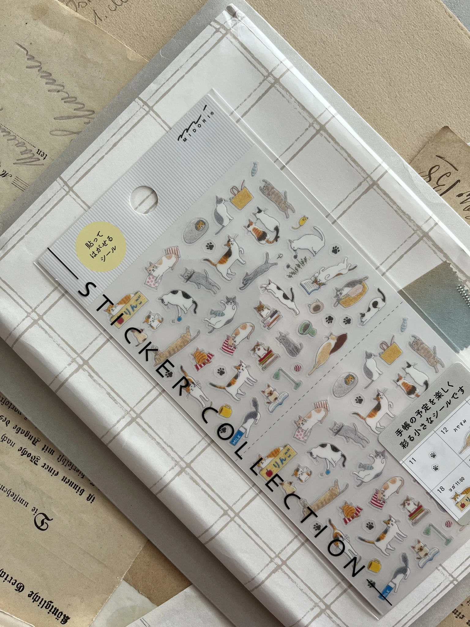 Kassidega kleebiste leht "Cat (S)" Jaapani brändilt Midori. Väikesed kleebised sobivad ideaalselt kaunistama planeerijat või märkmikku.