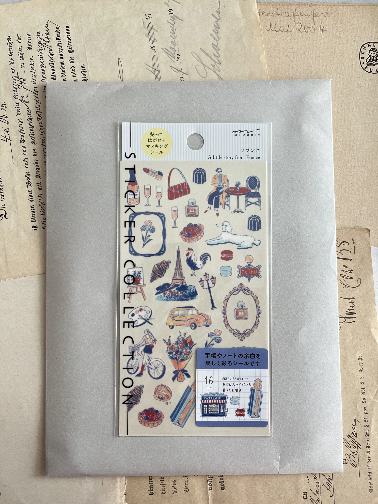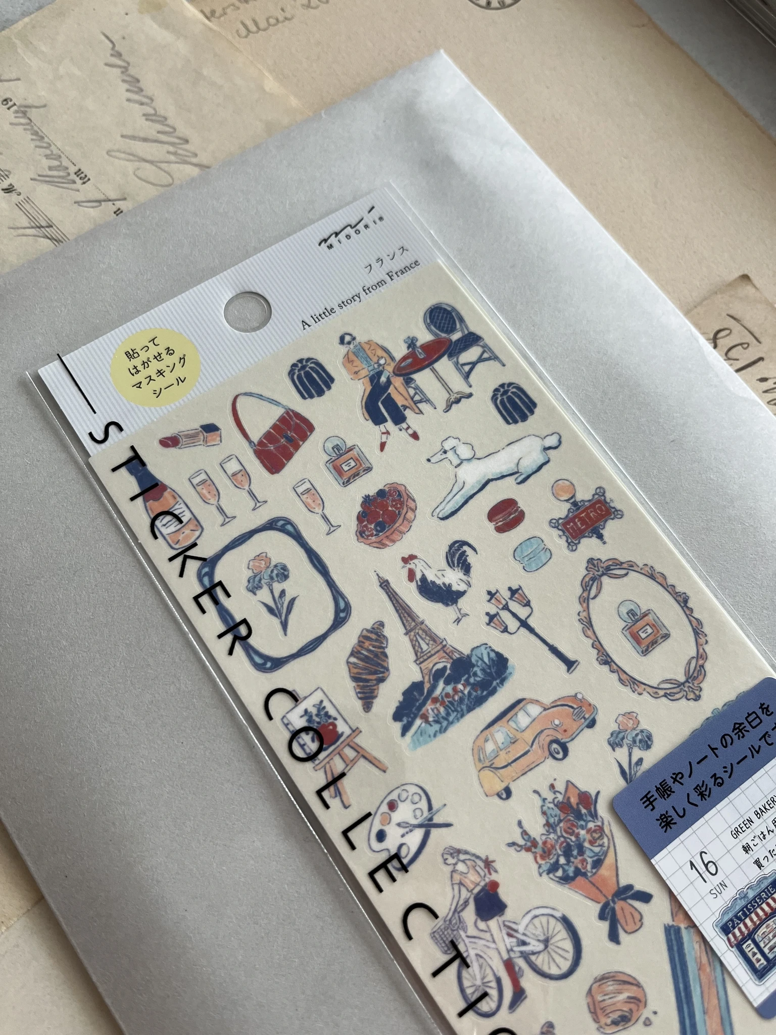 Linnaelu motiividega kleebiste leht "French motifs" Jaapani brändilt Midori. Väikesed kleebised sobivad ideaalselt kaunistama planeerijat või märkmikku. Samas sarjas saadaval ka Korea, Prantsuse, Itaalia ja Jaapani motiivid.