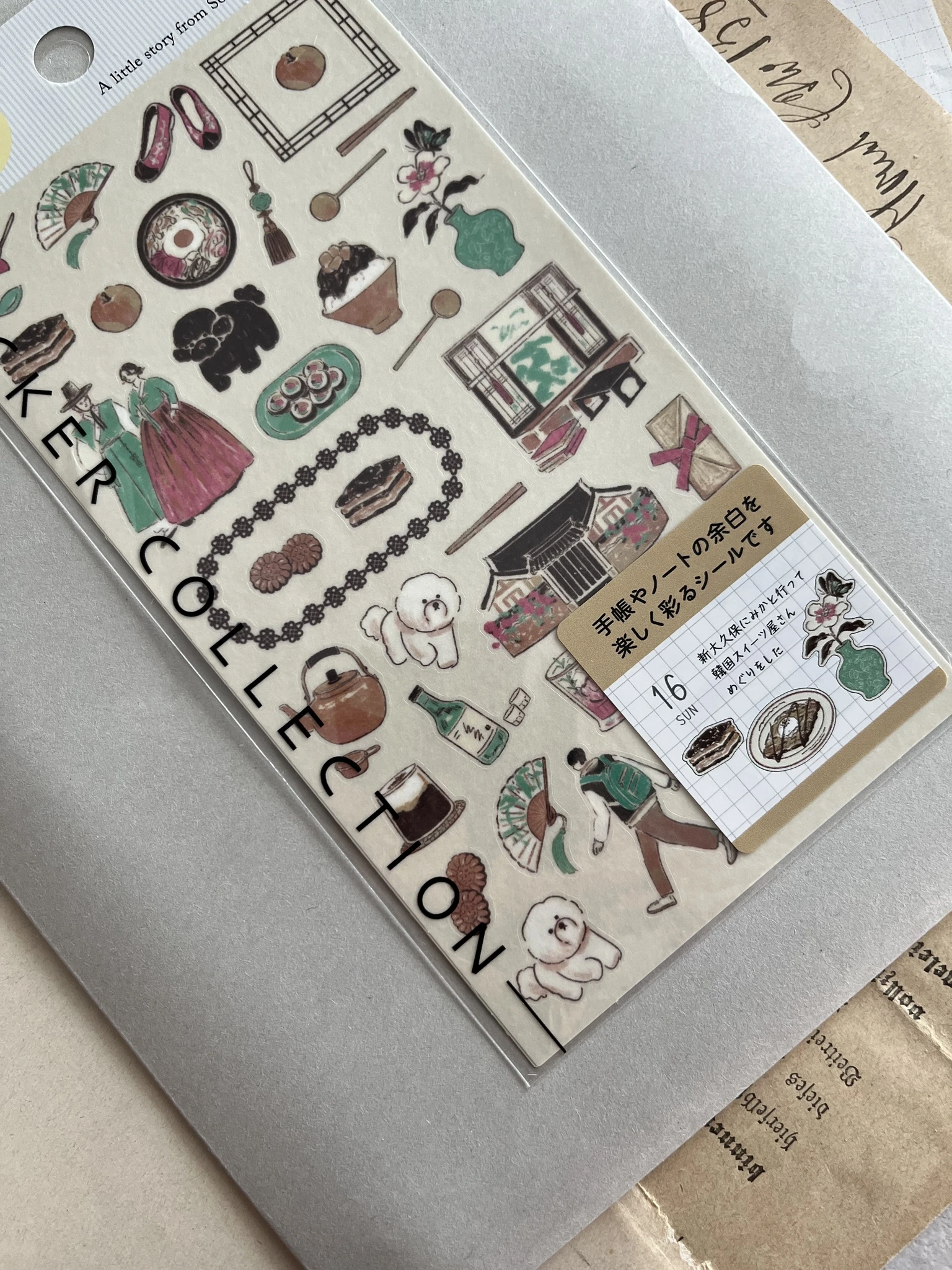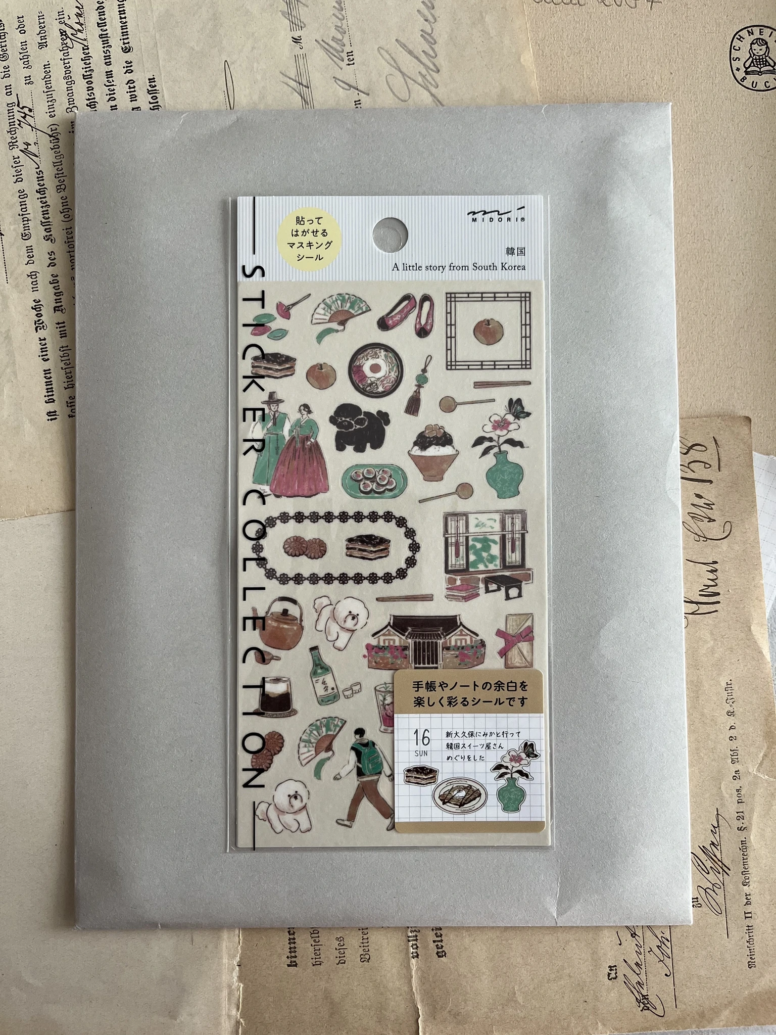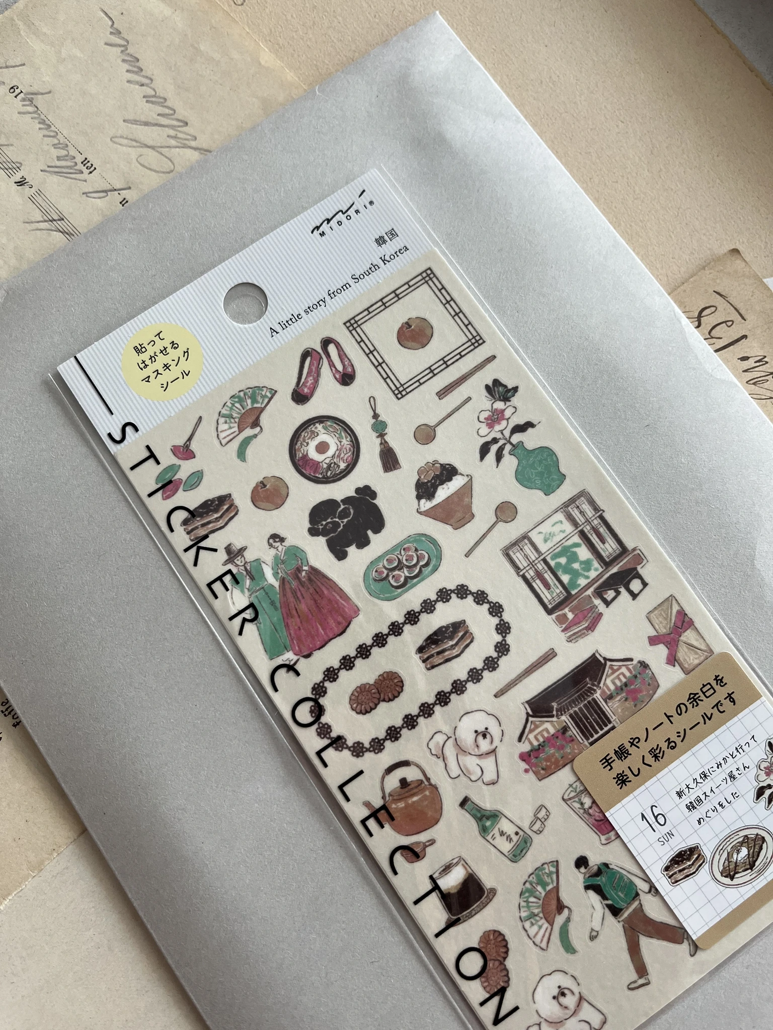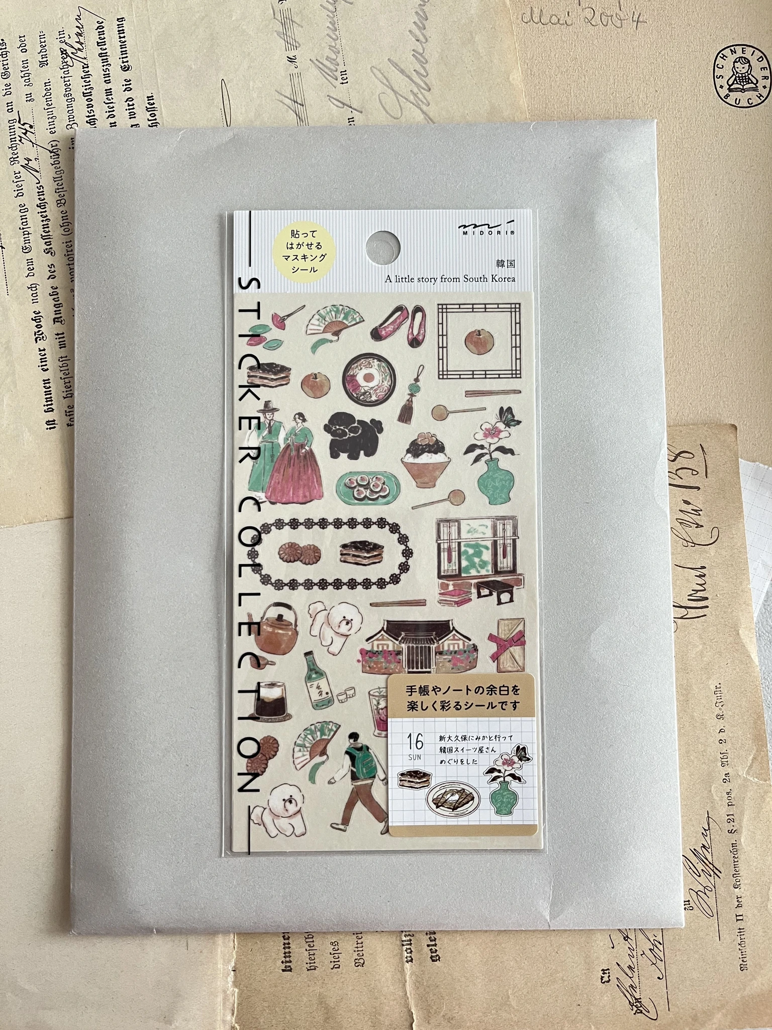 Linnaelu motiividega kleebiste leht "Korean motifs" Jaapani brändilt Midori. Väikesed kleebised sobivad ideaalselt kaunistama planeerijat või märkmikku. Samas sarjas saadaval ka Prantsuse, Itaalia ja Jaapani motiivid.
